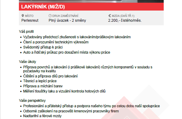 | CNC-OHRAŇOVÁNÍ / OHÝBÁNÍ (M/Ž/D) | Strojírenství a automobilový průmysl | Perlesreut | Hlavní pracovní poměr | Více |